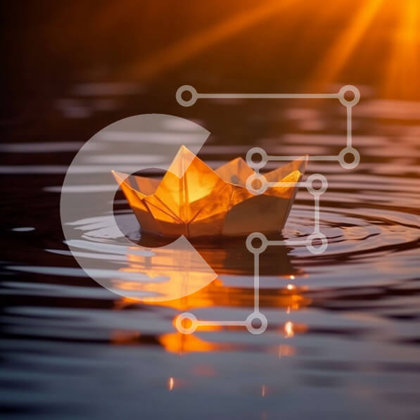 Intra Συλλεκτικό Ξύλινο Παζλ Plywood 4mm – Εκπληκτική εικόνα του χάρτινου σκάφους Origami στο νερό στο ηλιοβασίλεμα Σε Ξύλινο Κουτί – Διαστάσεις: 10×10 cm – 25 κομμάτια
