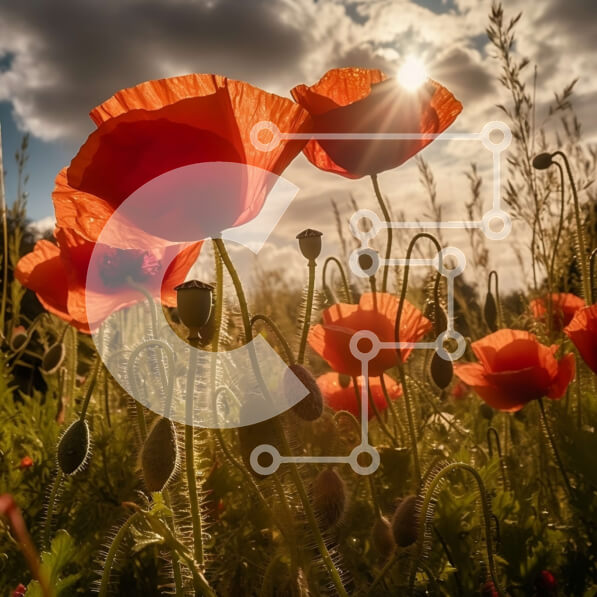 Intra Συλλεκτικό Ξύλινο Παζλ Plywood 4mm – Εκπληκτική εικόνα ενός χωραφιού με κόκκινες παπαρούνες με τον ήλιο να λάμπει στο βάθος Σε Ξύλινο Κουτί – Διαστάσεις: 10×10 cm – 25 κομμάτια