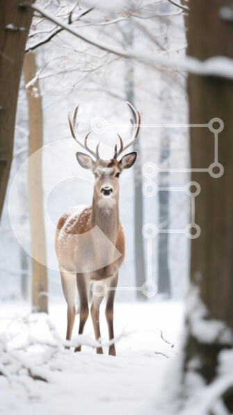 Intra Συλλεκτικό Ξύλινο Παζλ Plywood 4mm – Ελάφια σε ένα χιονισμένο δάσος Σε Ξύλινο Κουτί – Διαστάσεις: 10×10 cm – 25 κομμάτια