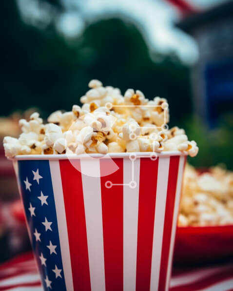 Intra Συλλεκτικό Ξύλινο Παζλ Plywood 4mm – Εορτασμός της Ημέρας της Ανεξαρτησίας με κύπελλο ποπ κορν με θέμα την αμερικανική σημαία Σε Ξύλινο Κουτί – Διαστάσεις: 10×10 cm – 25 κομμάτια