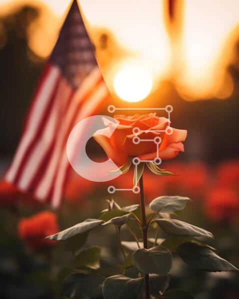 Intra Συλλεκτικό Ξύλινο Παζλ Plywood 4mm – Εορτασμός 4ης Ιουλίου με κόκκινο τριαντάφυλλο και αμερικανική σημαία Σε Ξύλινο Κουτί – Διαστάσεις: 10×10 cm – 25 κομμάτια