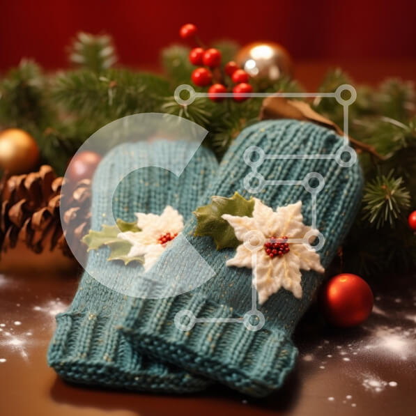 Intra Συλλεκτικό Ξύλινο Παζλ Plywood 4mm – Εορταστικά γαλαζοπράσινα γάντια με Poinsettia και Holly Σε Ξύλινο Κουτί – Διαστάσεις: 10×10 cm – 25 κομμάτια