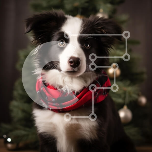 Intra Συλλεκτικό Ξύλινο Παζλ Plywood 4mm – Εορταστικό Border Collie μπροστά από το χριστουγεννιάτικο δέντρο Σε Ξύλινο Κουτί – Διαστάσεις: 10×10 cm – 25 κομμάτια