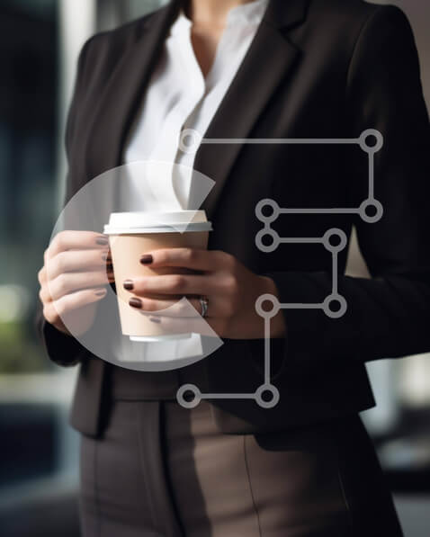 Intra Συλλεκτικό Ξύλινο Παζλ Plywood 4mm – Επαγγελματίας γυναίκα με επαγγελματικό κοστούμι κρατώντας φλιτζάνι καφέ Σε Ξύλινο Κουτί – Διαστάσεις Puzzle: 10×10 cm – 25 κομμάτια