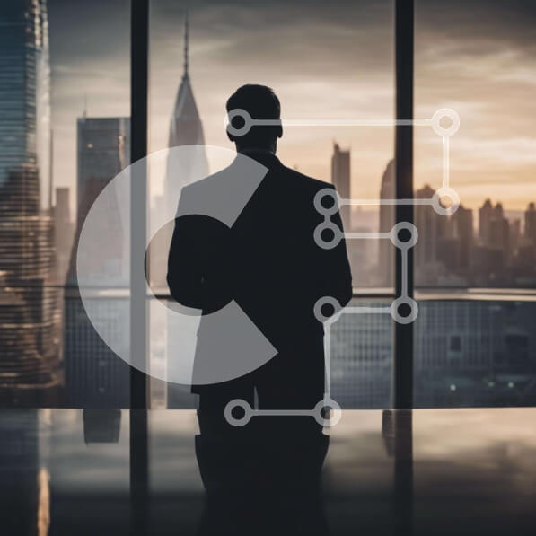 Intra Συλλεκτικό Ξύλινο Παζλ Plywood 4mm – Επιχειρηματίας που κοιτάζει έξω στον ορίζοντα της πόλης Σε Ξύλινο Κουτί – Διαστάσεις Puzzle: 10×10 cm – 25 κομμάτια