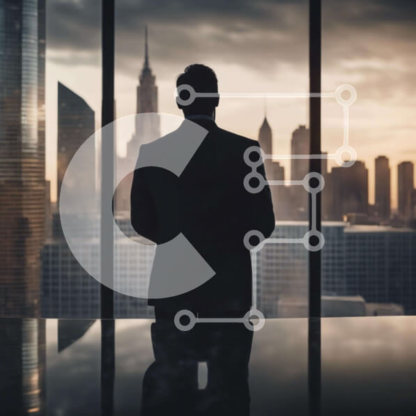 Intra Συλλεκτικό Ξύλινο Παζλ Plywood 4mm – Επιχειρηματίας που κοιτάζει έξω τον ορίζοντα της πόλης Σε Ξύλινο Κουτί – Διαστάσεις Puzzle: 10×10 cm – 25 κομμάτια