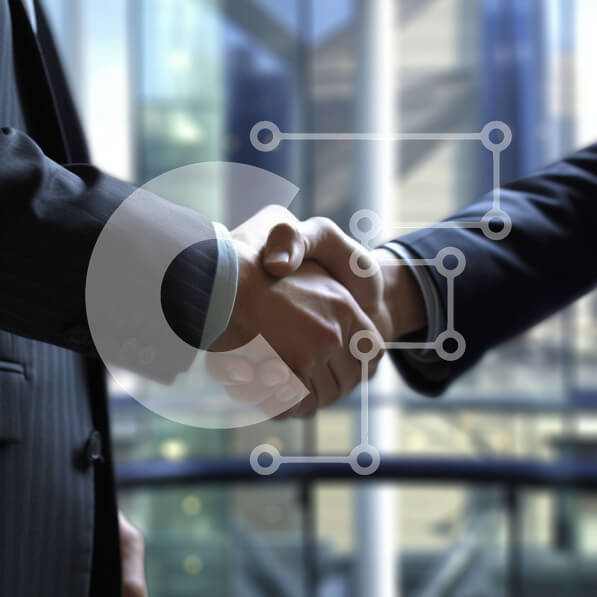 Intra Συλλεκτικό Ξύλινο Παζλ Plywood 4mm – Επιχειρηματίες χειραψία μπροστά από ένα μεγάλο κτίριο Σε Ξύλινο Κουτί – Διαστάσεις Puzzle: 10×10 cm – 25 κομμάτια