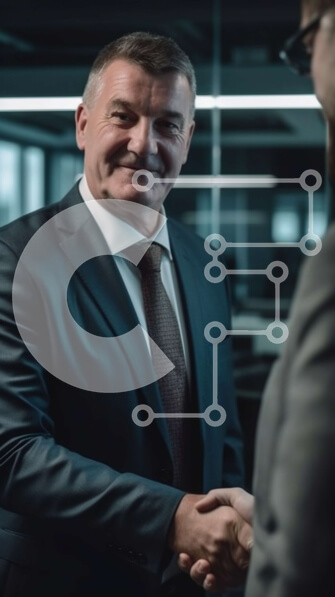 Intra Συλλεκτικό Ξύλινο Παζλ Plywood 4mm – Εταιρική εικόνα δύο επιχειρηματιών που δίνουν τα χέρια σε ένα σύγχρονο γραφείο Σε Ξύλινο Κουτί – Διαστάσεις Puzzle: 10×10 cm – 25 κομμάτια