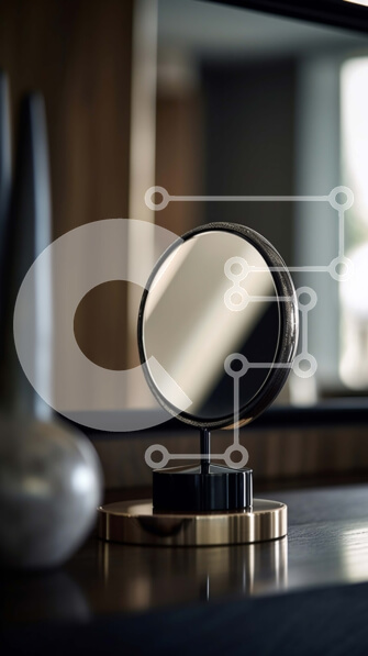 Intra Συλλεκτικό Ξύλινο Παζλ Plywood 4mm – Ευρύχωρο και καλά φωτισμένο δωμάτιο με στρογγυλό καθρέφτη και βάζο με λευκά λουλούδια Σε Ξύλινο Κουτί – Διαστάσεις Puzzle: 10×10 cm – 25 κομμάτια