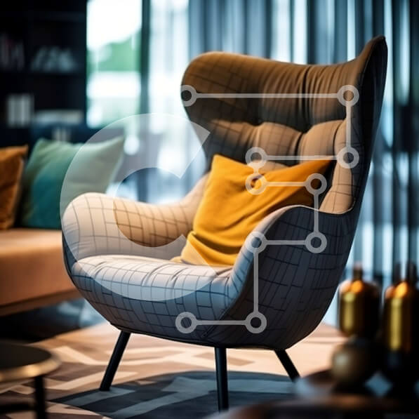 Intra Συλλεκτικό Ξύλινο Παζλ Plywood 4mm – Ευρύχωρο και καλά φωτισμένο σαλόνι με γκρι πολυθρόνα και κίτρινα μαξιλάρια Σε Ξύλινο Κουτί – Διαστάσεις Puzzle: 10×10 cm – 25 κομμάτια