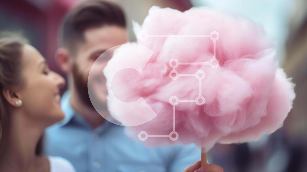 Intra Συλλεκτικό Ξύλινο Παζλ Plywood 4mm – Ευτυχισμένο ζευγάρι που απολαμβάνει το μαλλί της γριάς στην έκθεση Σε Ξύλινο Κουτί – Διαστάσεις Puzzle: 10×10 cm – 25 κομμάτια