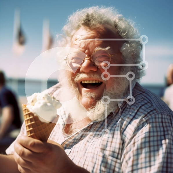 Intra Συλλεκτικό Ξύλινο Παζλ Plywood 4mm – Ευτυχισμένος ηλικιωμένος με γυαλιά και καρό πουκάμισο τρώει παγωτό σε εξωτερικούς χώρους Σε Ξύλινο Κουτί – Διαστάσεις Puzzle: 10×10 cm – 25 κομμάτια
