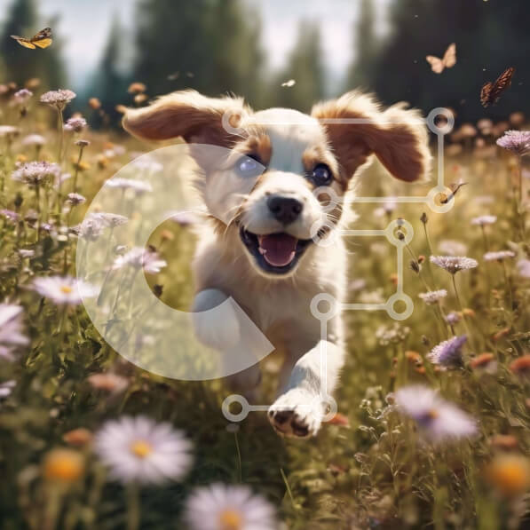 Intra Συλλεκτικό Ξύλινο Παζλ Plywood 4mm – Ευτυχισμένο κουτάβι που τρέχει στο πεδίο λουλουδιών με πεταλούδες Σε Ξύλινο Κουτί – Διαστάσεις: 10×10 cm – 25 κομμάτια