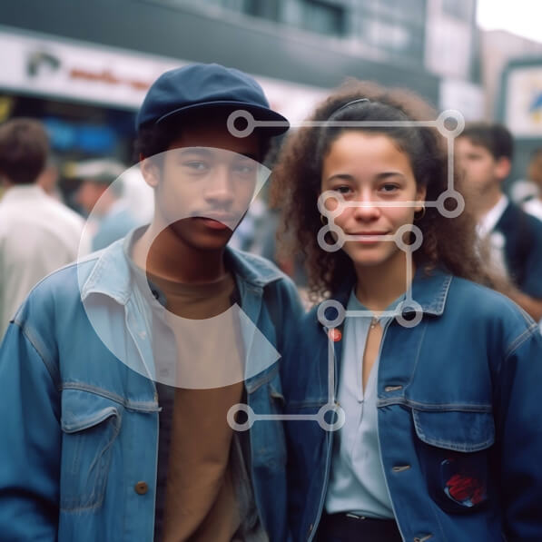 Intra Συλλεκτικό Ξύλινο Παζλ Plywood 4mm – Ευτυχισμένο ζευγάρι στο δρόμο της πόλης φορώντας τζιν και δερμάτινα μπουφάν Σε Ξύλινο Κουτί – Διαστάσεις Puzzle: 10×10 cm – 25 κομμάτια