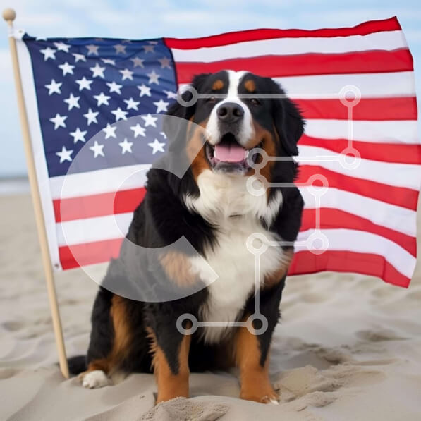 Intra Συλλεκτικό Ξύλινο Παζλ Plywood 4mm – Ευτυχισμένος σκύλος στην παραλία με αμερικανική σημαία Σε Ξύλινο Κουτί – Διαστάσεις Puzzle: 10×10 cm – 25 κομμάτια