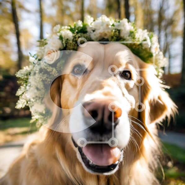 Intra Συλλεκτικό Ξύλινο Παζλ Plywood 4mm – Ευτυχισμένος σκύλος Γκόλντεν Ριτρίβερ με στέμμα λουλουδιών Σε Ξύλινο Κουτί – Διαστάσεις: 10×10 cm – 25 κομμάτια