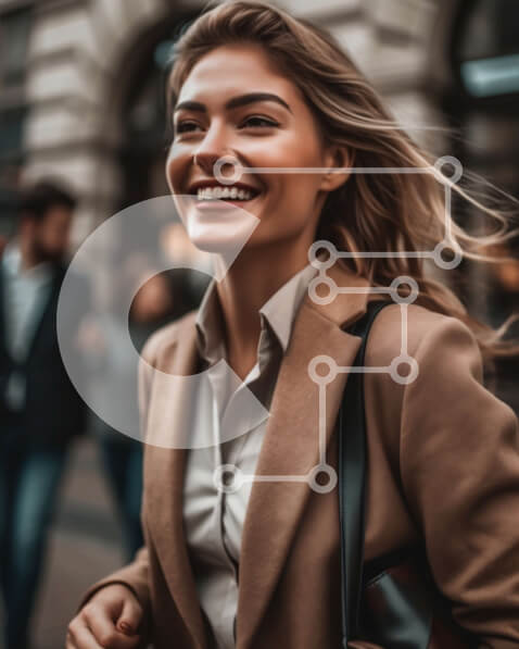 Intra Συλλεκτικό Ξύλινο Παζλ Plywood 4mm – Ευτυχισμένη γυναίκα που περπατά σε έναν πολυσύχναστο δρόμο της πόλης Σε Ξύλινο Κουτί – Διαστάσεις Puzzle: 10×10 cm – 25 κομμάτια