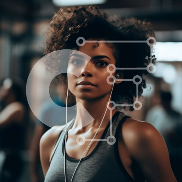 Intra Συλλεκτικό Ξύλινο Παζλ Plywood 4mm – Εφαρμοσμένη και σίγουρη νεαρή γυναίκα στο γυμναστήριο με ακουστικά Σε Ξύλινο Κουτί – Διαστάσεις Puzzle: 10×10 cm – 25 κομμάτια