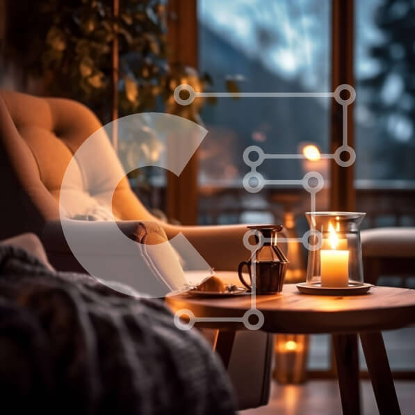 Intra Συλλεκτικό Ξύλινο Παζλ Plywood 4mm – Ζεστό και φιλόξενο σαλόνι με θέα στα χιονισμένα δέντρα και τα βουνά Σε Ξύλινο Κουτί – Διαστάσεις Puzzle: 10×10 cm – 25 κομμάτια