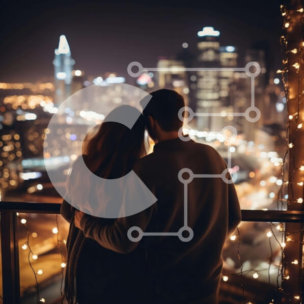 Intra Συλλεκτικό Ξύλινο Παζλ Plywood 4mm – Ζευγάρι αγκαλιάζεται και απολαμβάνει τη θέα στην πόλη τη νύχτα Σε Ξύλινο Κουτί – Διαστάσεις Puzzle: 10×10 cm – 25 κομμάτια