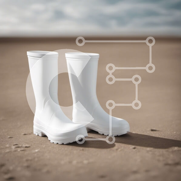 Intra Συλλεκτικό Ξύλινο Παζλ Plywood 4mm – Ζευγάρι λευκές λαστιχένιες μπότες στην αμμώδη παραλία Σε Ξύλινο Κουτί – Διαστάσεις: 10×10 cm – 25 κομμάτια