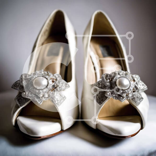 Intra Συλλεκτικό Ξύλινο Παζλ Plywood 4mm – Ζευγάρι λευκά ψηλοτάκουνα παπούτσια με πέρλες και διακοσμητικά Σε Ξύλινο Κουτί – Διαστάσεις: 10×10 cm – 25 κομμάτια