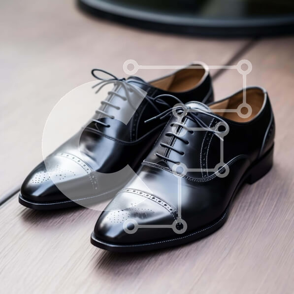 Intra Συλλεκτικό Ξύλινο Παζλ Plywood 4mm – Ζευγάρι μαύρα παπούτσια φόρεμα σε δρύινο ξύλινο τραπέζι Σε Ξύλινο Κουτί – Διαστάσεις: 10×10 cm – 25 κομμάτια
