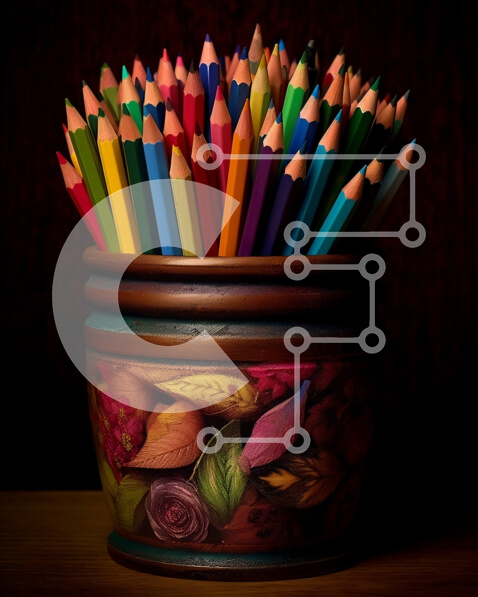 Intra Συλλεκτικό Ξύλινο Παζλ Plywood 4mm – Ζωηρόχρωμη θήκη μολυβιών με τα μολύβια στον ξύλινο πίνακα Στοκ Φωτογραφία Σε Ξύλινο Κουτί – Διαστάσεις: 10×10 cm – 25 κομμάτια
