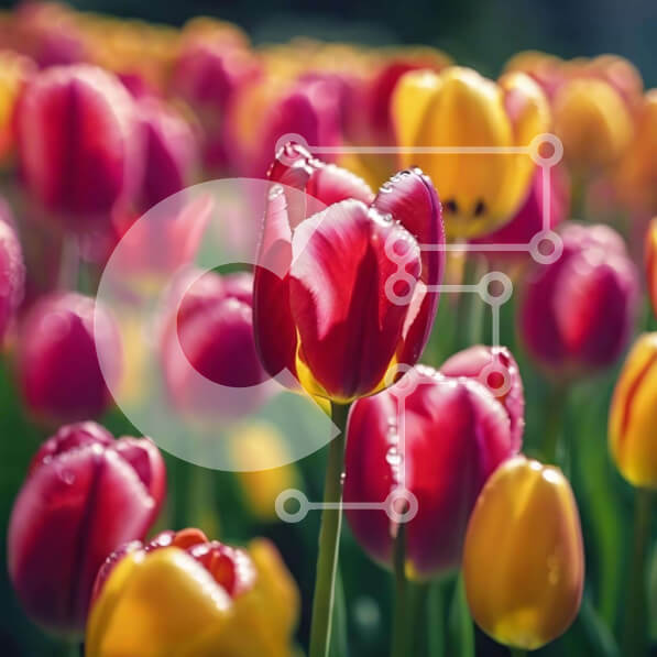Intra Συλλεκτικό Ξύλινο Παζλ Plywood 4mm – Ζωηρό πεδίο τουλιπών με σταγονίδια νερού Σε Ξύλινο Κουτί – Διαστάσεις: 10×10 cm – 25 κομμάτια