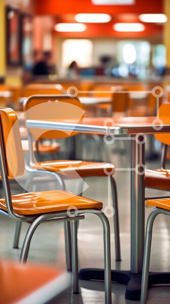 Intra Συλλεκτικό Ξύλινο Παζλ Plywood 4mm – Ζωντανές πορτοκαλί καρέκλες σε ένα άνετο εστιατόριο γρήγορου φαγητού Σε Ξύλινο Κουτί – Διαστάσεις Puzzle: 10×10 cm – 25 κομμάτια
