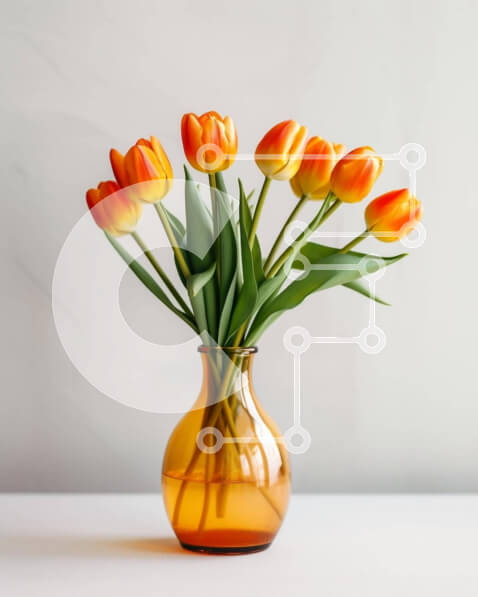 Intra Συλλεκτικό Ξύλινο Παζλ Plywood 4mm – Ζωντανές πορτοκαλί τουλίπες σε γυάλινο βάζο στο τραπέζι Σε Ξύλινο Κουτί – Διαστάσεις: 10×10 cm – 25 κομμάτια