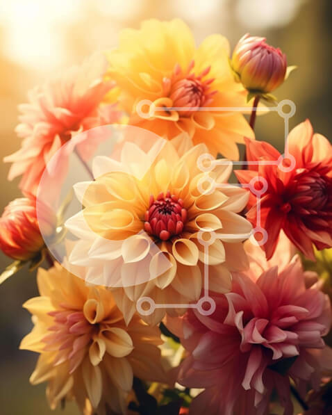 Intra Συλλεκτικό Ξύλινο Παζλ Plywood 4mm – Ζωντανή ανθοδέσμη Ντάλια σε πλήρη άνθιση Σε Ξύλινο Κουτί – Διαστάσεις: 10×10 cm – 25 κομμάτια