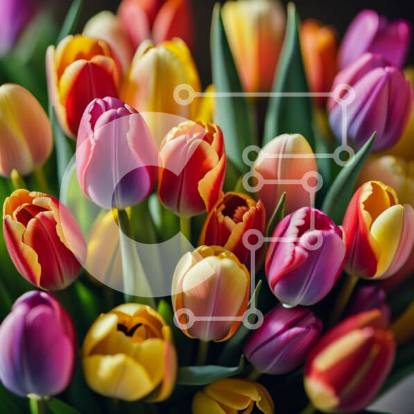Intra Συλλεκτικό Ξύλινο Παζλ Plywood 4mm – Ζωντανή ανθοδέσμη τουλίπας με πράσινο – Φωτογραφία Αρχείου Σε Ξύλινο Κουτί – Διαστάσεις: 10×10 cm – 25 κομμάτια