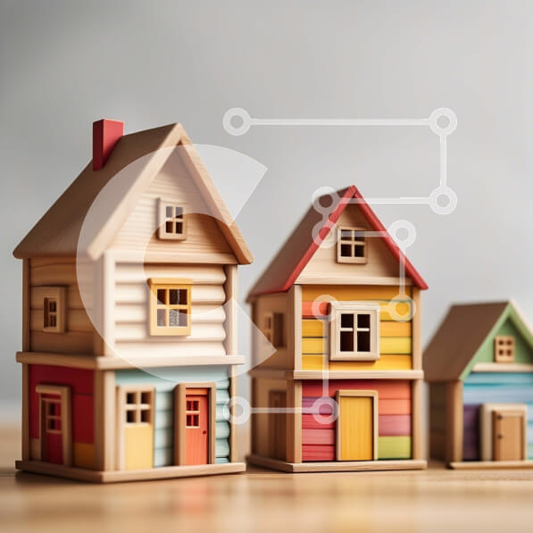 Intra Συλλεκτικό Ξύλινο Παζλ Plywood 4mm – Ζωντανή εικόνα πολύχρωμων ξύλινων σπιτιών σε τραπέζι Σε Ξύλινο Κουτί – Διαστάσεις Puzzle: 10×10 cm – 25 κομμάτια