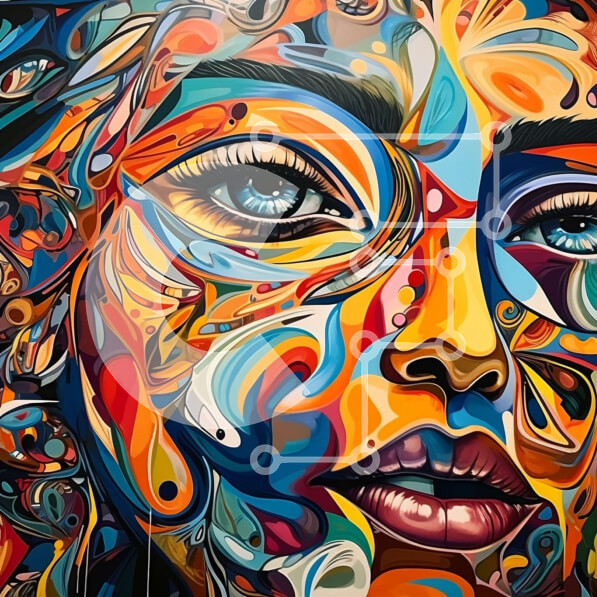 Intra Συλλεκτικό Ξύλινο Παζλ Plywood 4mm – Ζωντανή και ψυχεδελική τοιχογραφία του προσώπου μιας χαμογελαστής γυναίκας Σε Ξύλινο Κουτί – Διαστάσεις Puzzle: 10×10 cm – 25 κομμάτια