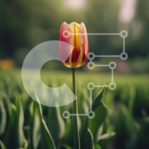 Intra Συλλεκτικό Ξύλινο Παζλ Plywood 4mm – Ζωντανή κόκκινη και κίτρινη τουλίπα σε ένα εκτεταμένο πράσινο πεδίο Σε Ξύλινο Κουτί – Διαστάσεις: 10×10 cm – 25 κομμάτια