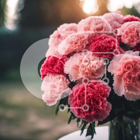 Intra Συλλεκτικό Ξύλινο Παζλ Plywood 4mm – Ζωντανό μπουκέτο από ροζ και κόκκινα γαρίφαλα σε φυσικό περιβάλλον Σε Ξύλινο Κουτί – Διαστάσεις: 10×10 cm – 25 κομμάτια
