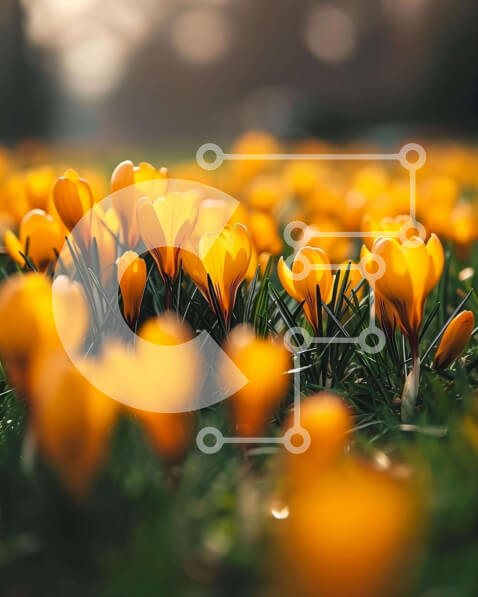 Intra Συλλεκτικό Ξύλινο Παζλ Plywood 4mm – Ζωντανό πεδίο με κίτρινα λουλούδια κρόκου Σε Ξύλινο Κουτί – Διαστάσεις: 10×10 cm – 25 κομμάτια