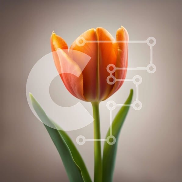 Intra Συλλεκτικό Ξύλινο Παζλ Plywood 4mm – Ζωντανό πορτοκαλί λουλούδι τουλίπας με πράσινα φύλλα σε κυκλοθυμικό γκρι φόντο Σε Ξύλινο Κουτί – Διαστάσεις: 10×10 cm – 25 κομμάτια