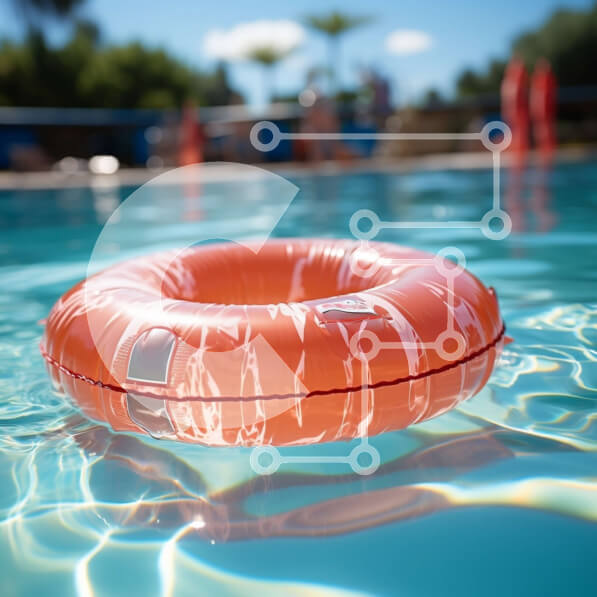 Intra Συλλεκτικό Ξύλινο Παζλ Plywood 4mm – Ζωντανό πορτοκαλί σωσίβιο που επιπλέει σε μια καθαρή πισίνα Σε Ξύλινο Κουτί – Διαστάσεις Puzzle: 10×10 cm – 25 κομμάτια
