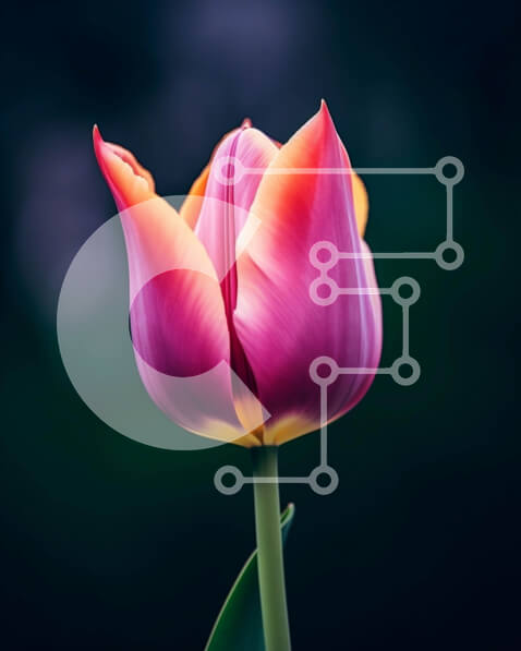Intra Συλλεκτικό Ξύλινο Παζλ Plywood 4mm – Ζωντανό ροζ και κίτρινο λουλούδι τουλίπας σε άνθιση Σε Ξύλινο Κουτί – Διαστάσεις: 10×10 cm – 25 κομμάτια