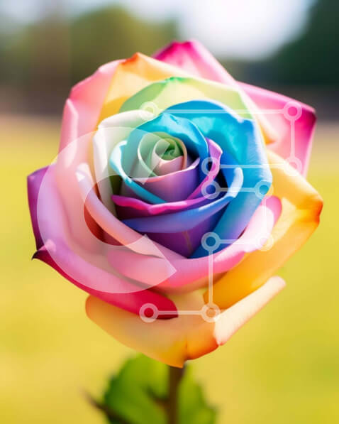 Intra Συλλεκτικό Ξύλινο Παζλ Plywood 4mm – Ζωντανό τριαντάφυλλο σε χρώμα ουράνιου τόξου σε πράσινο γρασίδι Σε Ξύλινο Κουτί – Διαστάσεις: 10×10 cm – 25 κομμάτια