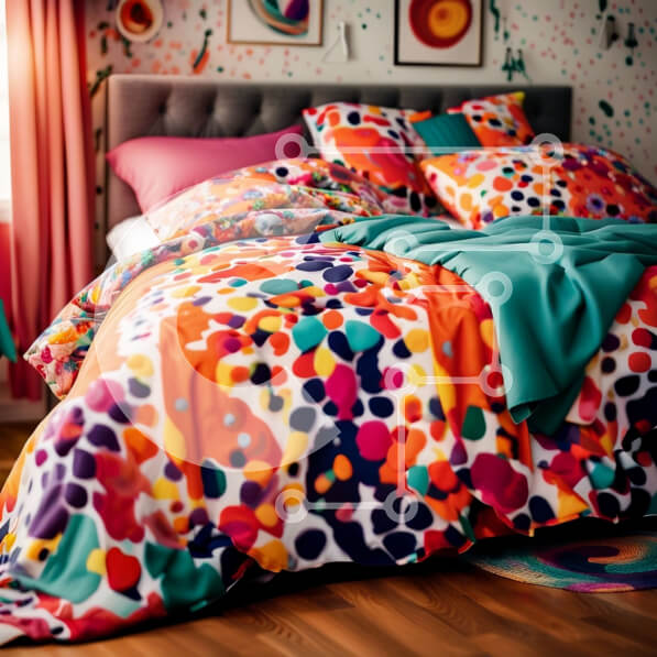 Intra Συλλεκτικό Ξύλινο Παζλ Plywood 4mm – Ζωντανό υπνοδωμάτιο με πολύχρωμο κάλυμμα και ασορτί κουρτίνες Σε Ξύλινο Κουτί – Διαστάσεις Puzzle: 10×10 cm – 25 κομμάτια