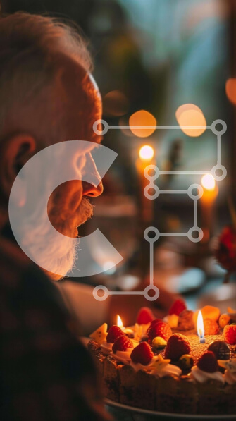 Intra Συλλεκτικό Ξύλινο Παζλ Plywood 4mm – Ηλικιωμένος άνδρας που σβήνει κεριά στο κέικ φρούτων Σε Ξύλινο Κουτί – Διαστάσεις Puzzle: 10×10 cm – 25 κομμάτια