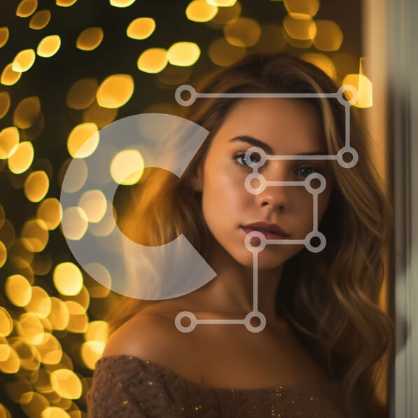 Intra Συλλεκτικό Ξύλινο Παζλ Plywood 4mm – Η κομψή νεαρή γυναίκα ποζάρει μπροστά από ένα παράθυρο με θολά φώτα Σε Ξύλινο Κουτί – Διαστάσεις Puzzle: 10×10 cm – 25 κομμάτια