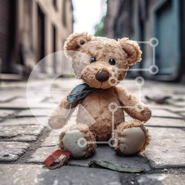 Intra Συλλεκτικό Ξύλινο Παζλ Plywood 4mm – Θλιβερό αρκουδάκι στο Crumbling Cobblestone Street Σε Ξύλινο Κουτί – Διαστάσεις: 10×10 cm – 25 κομμάτια