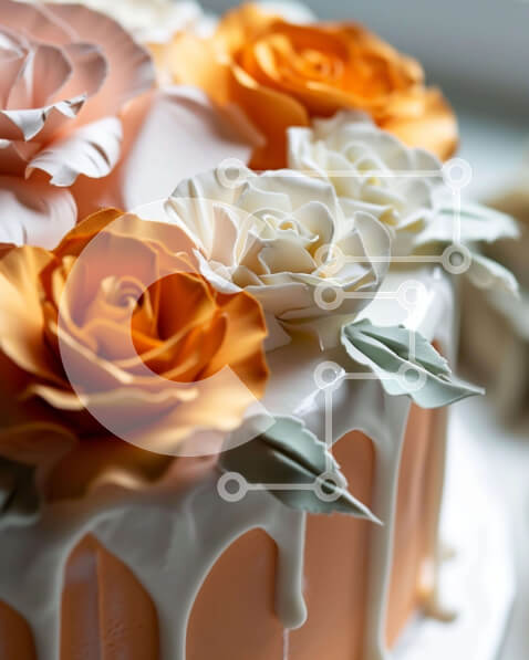 Intra Συλλεκτικό Ξύλινο Παζλ Plywood 4mm – Κέικ με λευκά και πορτοκαλί τριαντάφυλλα σε πορτοκαλί φόντο Σε Ξύλινο Κουτί – Διαστάσεις: 10×10 cm – 25 κομμάτια