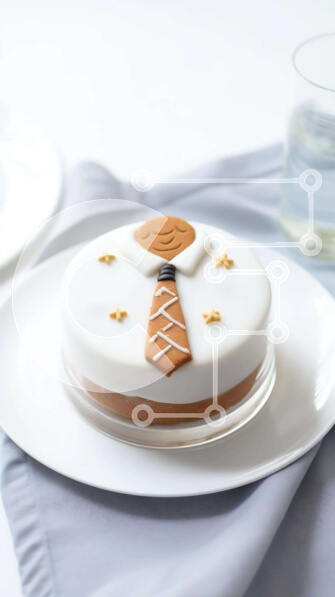Intra Συλλεκτικό Ξύλινο Παζλ Plywood 4mm – Κέικ με περίπλοκο σχέδιο ανδρικής γραβάτας σε λευκό πιάτο Σε Ξύλινο Κουτί – Διαστάσεις: 10×10 cm – 25 κομμάτια