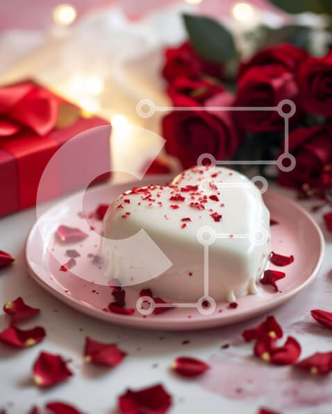 Intra Συλλεκτικό Ξύλινο Παζλ Plywood 4mm – Κέικ σε σχήμα καρδιάς με λευκό παγωμένο και κόκκινο ροδοπέταλα Σε Ξύλινο Κουτί – Διαστάσεις: 10×10 cm – 25 κομμάτια