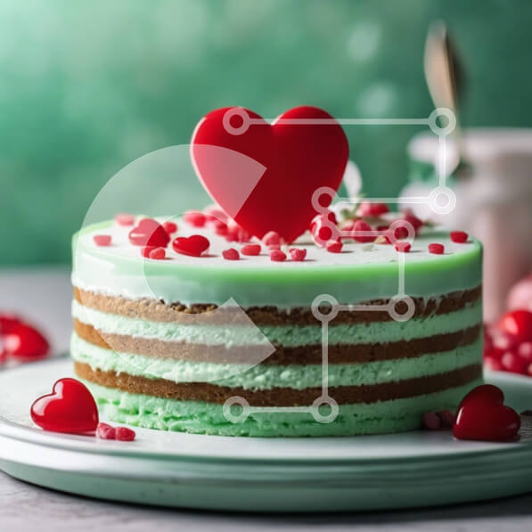 Intra Συλλεκτικό Ξύλινο Παζλ Plywood 4mm – Κέικ σε σχήμα καρδιάς με πράσινο γλάσο και κόκκινο ρόδι Σε Ξύλινο Κουτί – Διαστάσεις: 10×10 cm – 25 κομμάτια